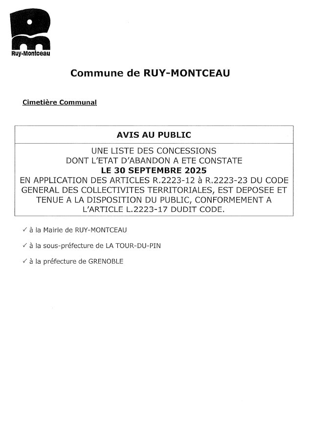 AVIS AU PUBLIC - CONCESSIONS EN ETAT D'ABANDON