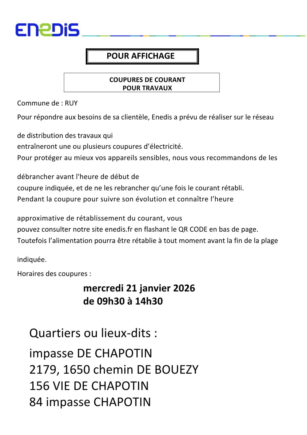 COUPURE DE COURANT POUR TRAVAUX