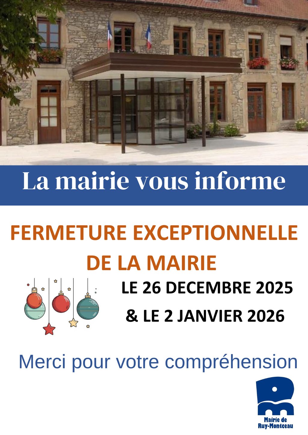 Fermeture exceptionnelle de la mairie