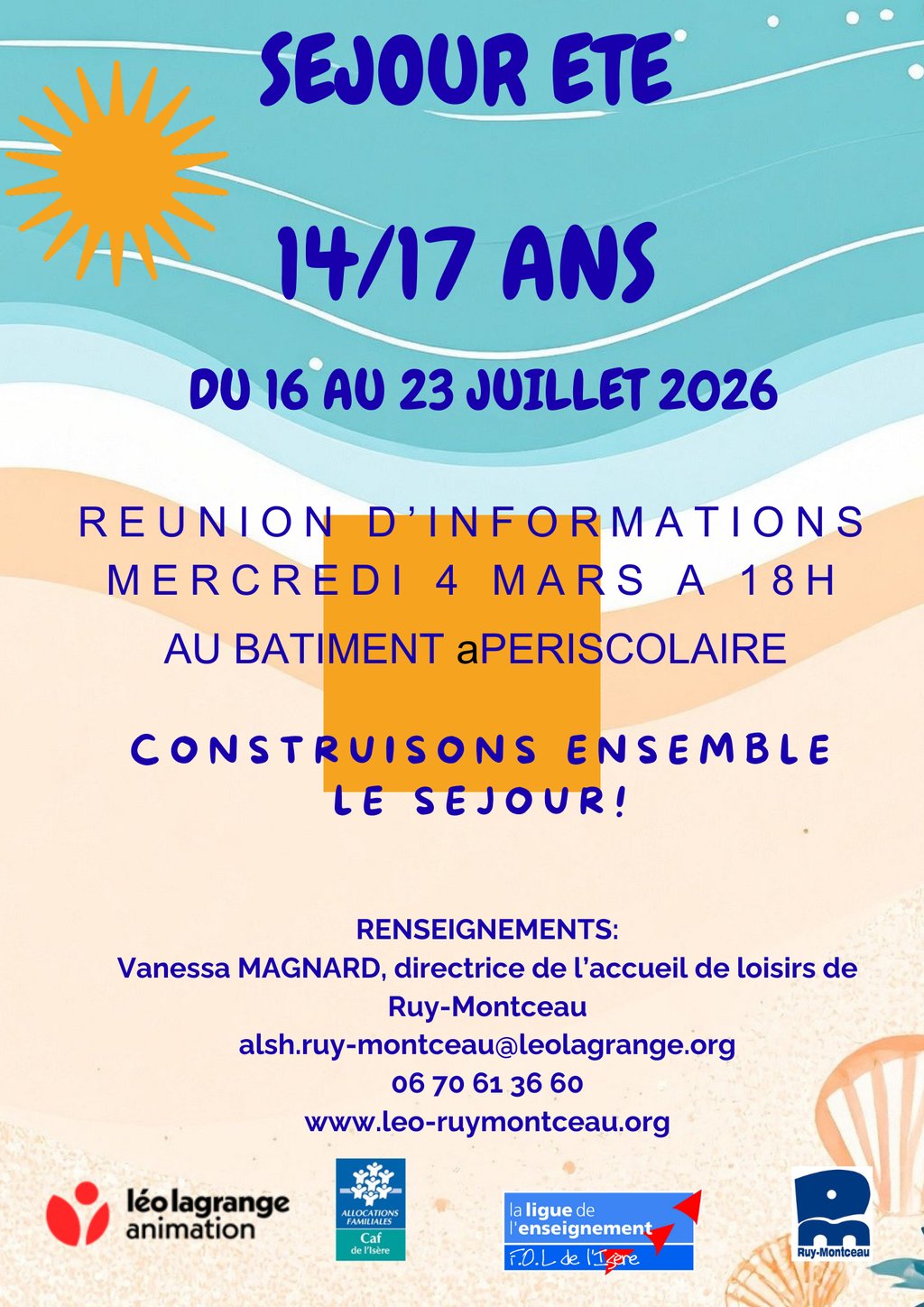 RÉUNION D'INFORMATION SÉJOUR ÉTÉ 14/17 ANS